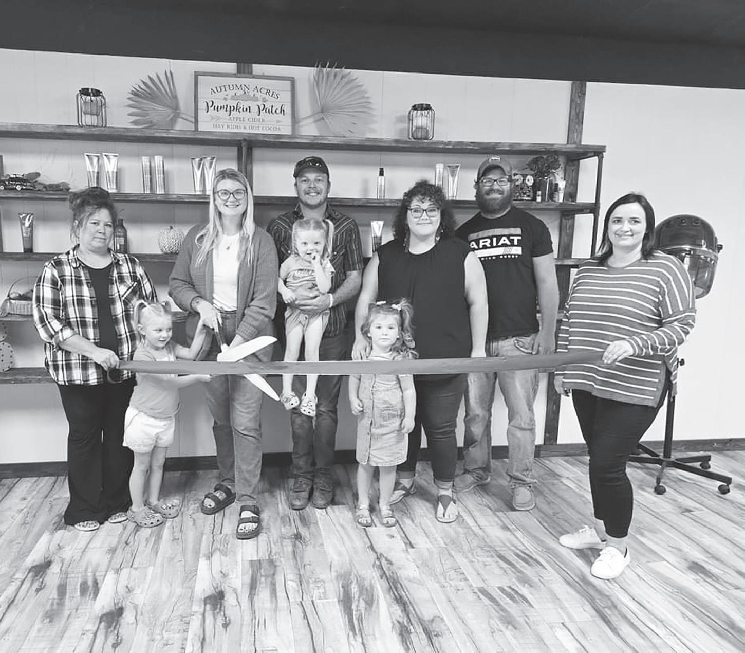 Current Princeton High School softball coach/athletics director Mike Schmidli (second from right), his wife Melissa (right, holding grandchild) and their family posed Friday afternoon at the entrance to the shelter house at the newly-named Mike Schmidli Softball Complex, located on the Putnam County R-1 school campus in Unionville. Schmidli was one of two PC coaches (the other being Max Mothersbaugh, for whom the high school field was named) who led Midget teams to 20 consecutive district championships and three state championships from 1988-2007. Schmidli, Mothersbaugh and all the players from that era will be inducted into the Missouri Sports Hall of Fame on Oct. 20 in Columbia as the “1988-2007 Putnam County Softball Era.” Schmidli’s PC teams won state championships in 1998 and 2003, and he led North Harrison to a state championship in 1993. He was inducted into the Missouri High School Fastpitch Coaches Association Hall of Fame in 2009.