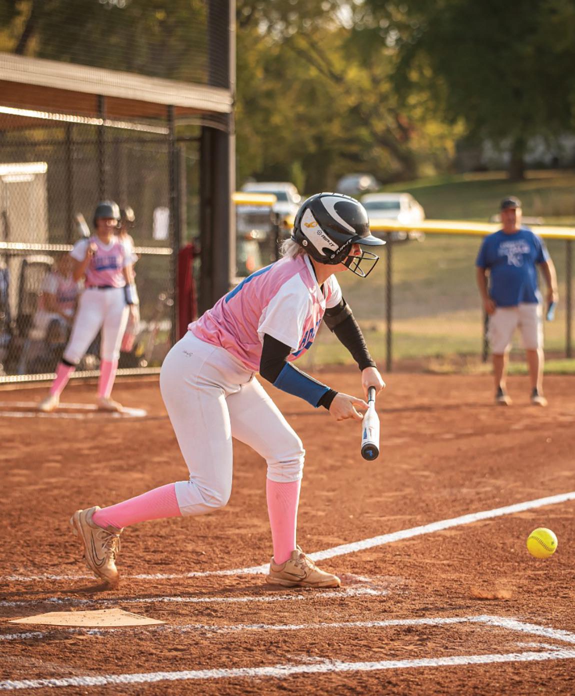 Audrey Kelly laid down a perfect bunt against Gilman City in Princeton’s game to open the George Scurlock Memorial Tournament on Saturday morning.