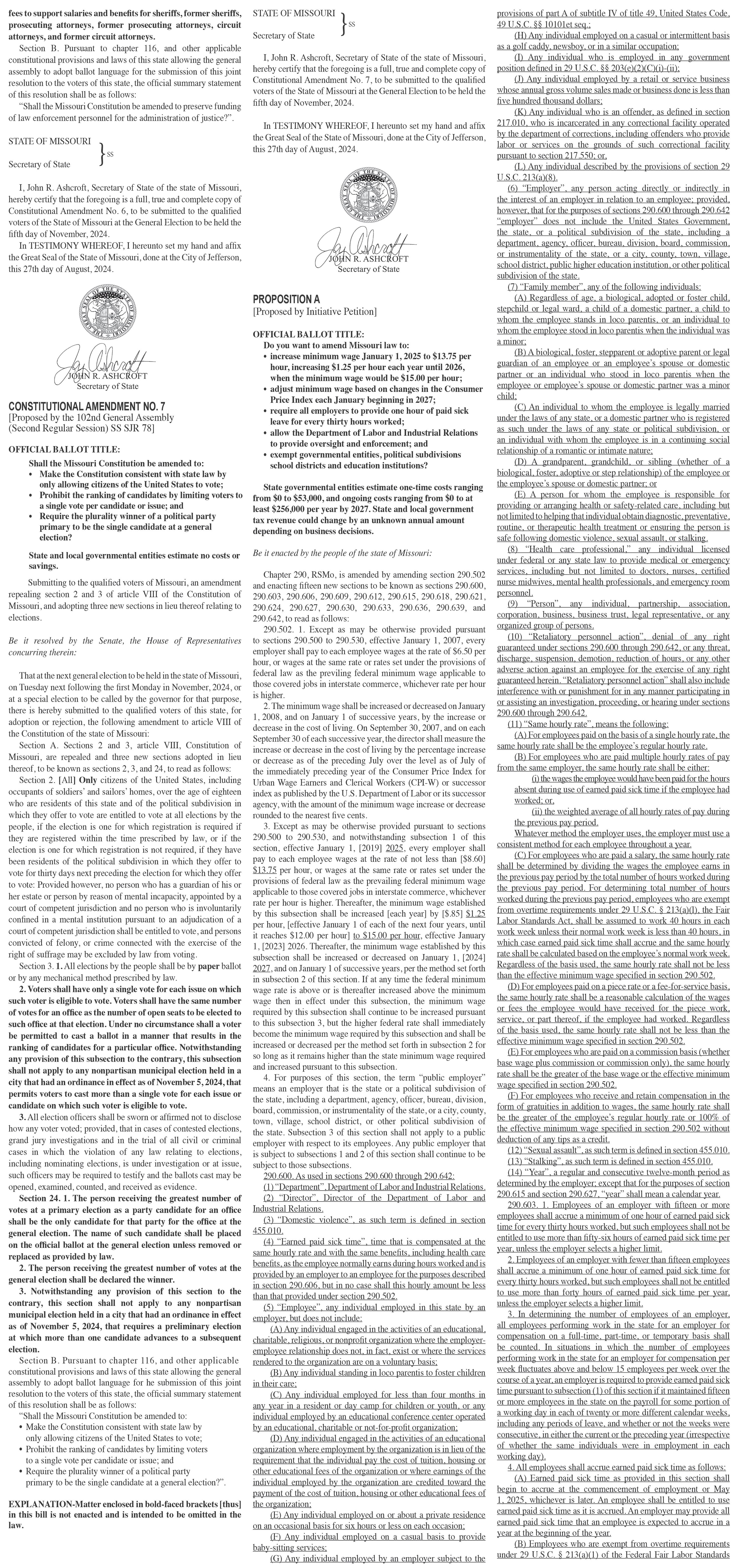 Proposed by 102nd General Assembly (Second Regular Session) SS SCS SJR 71