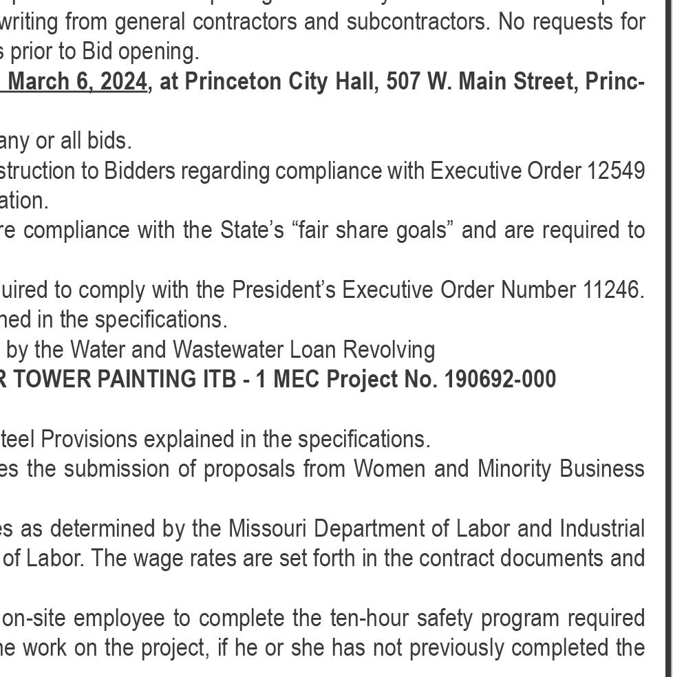 The limit of liability of the Princeton Post-Telegraph takes no responsibility for advertising, legal and/or non-legal, not published. The Princeton Post-Telegraph takes no responsibility for the non-publishing of news, letters to the editor, and/or press releases.
