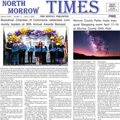 The North Morrow Times is a FREE monthly publication which promotes the good life in Boardman, Oregon. The tabloid sized newspaper is supported by advertising and is mailed free to everyone with a Boardman zipcode.