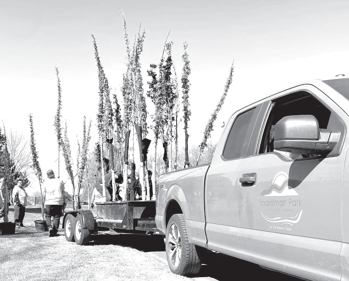 In celebration of Arbor Day, Boardman Park & Recreation District crew organized volunteers to plant 52 trees around Boardman. The Arbor Day Foundation, Amazon Web Services (AWS) and the City Public Works staff planted the trees at Marina Day Use Park, Boardman RV Park and in the green spaces along Front Streets across from Sunrise Cafe and Subway. Another eight trees were donated to Windy River Elementary School for their staff to plant at the school.