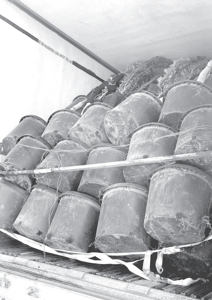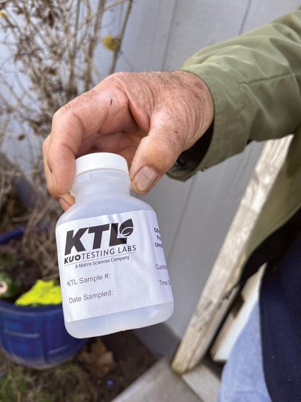 — directly on the well line in the pump house near his home. All the water for his home passes through these filters, while irrigation water bypasses the system and goes directly to his yard. Monge still tests the well water every month — both before and after it is filtered. He sends the tests to the Kuo Testing Lab in Umatilla to track the nitrate level in the groundwater and ensure his filter is working properly. On his most recent test, the unfiltered water had a nitrate level of 22.8 mg/L and the filtered water tested at 1.8 mg/L.