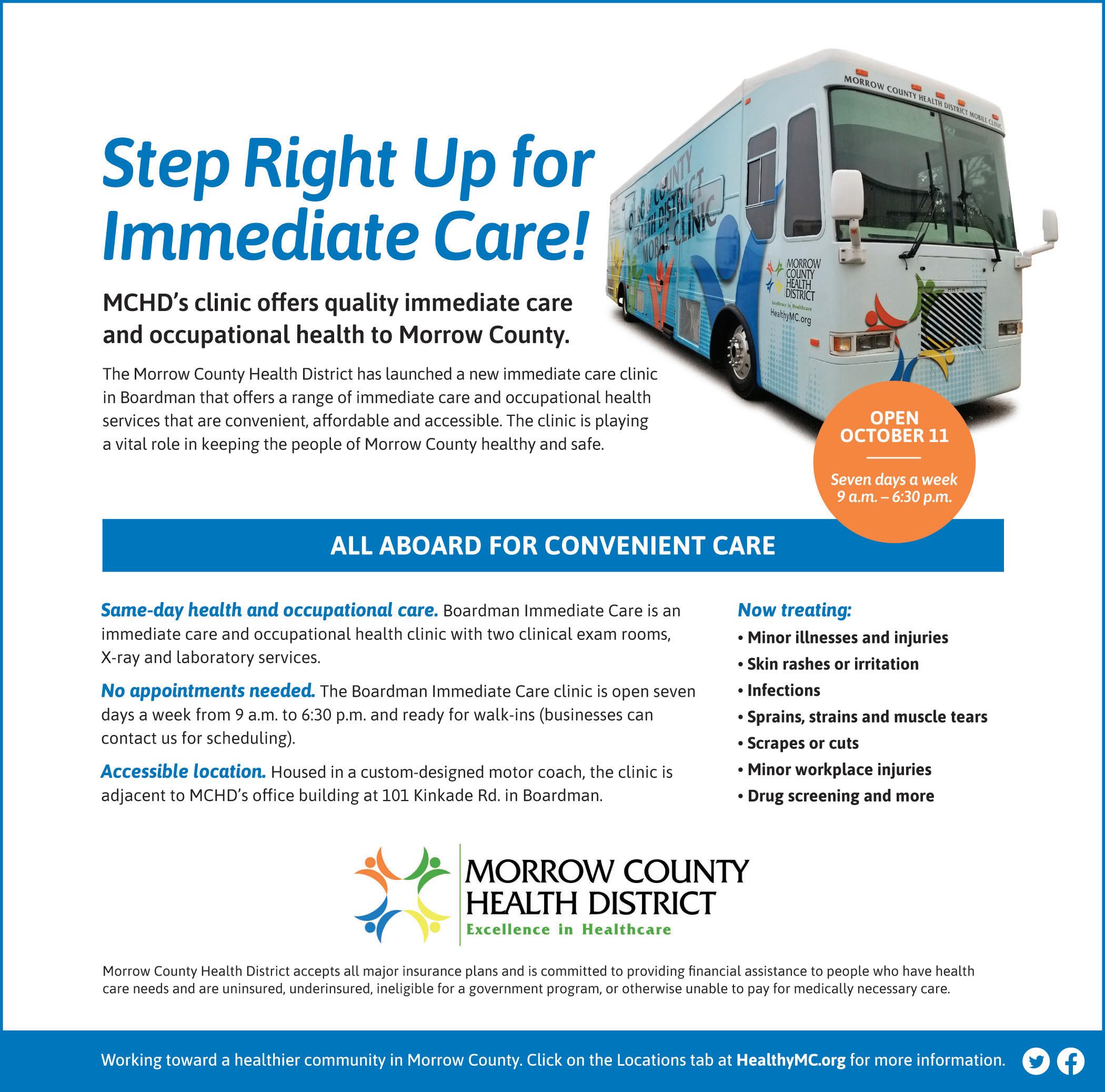 Excellent benefit package including medical, dental, vision with health insurance for employee and spouse, or employee and children at no cost to you. Also life & long term disability coverages, paid sick, holidays, vacation, retirement, education reimbursement program, ground and air ambulance membership, more. Preemployment drug screen and background check required. Applications are available at www.morrowcountyhealthdistrict.org on the Career Opportunities/ Current Openings page, at Pioneer Memorial Hospital, 541676-9133. EEOE.