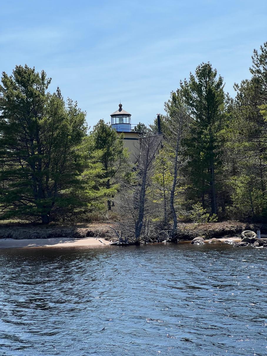 We passed through the channel leading out into the Keweenaw Bay with its wild inlets and coves (note to self, come back and explore by kayak) and passed by the Mendota Lighthouse A small fishing boat was headed inbound as we left the canal and we smiled and waved as boaters do The expanse of the southern shore lay before us in the brilliant sun, wild and inviting us to come closer