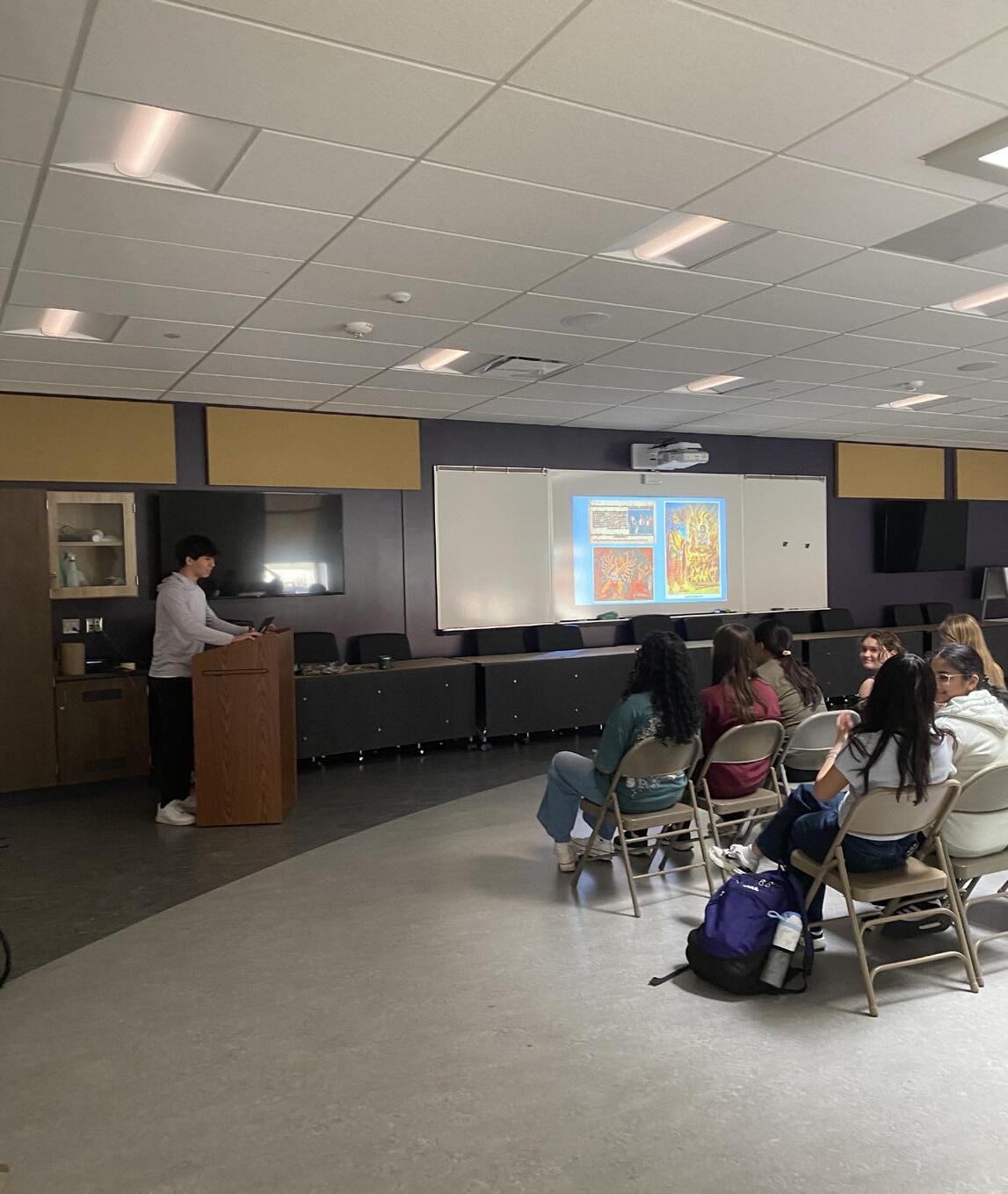 The club began last school year. “Ms. Hubbell helped us,” Sriram said. “We just had to talk to her about what we’d be doing.” Once they’d secured a teacher advisor, Mrs. Gaydos, they were set to have their first meeting. Hameed expressed her worries beforehand, unsure how many people would show up. But as they waited in the community room, they watched as it began to fill with more and more people.