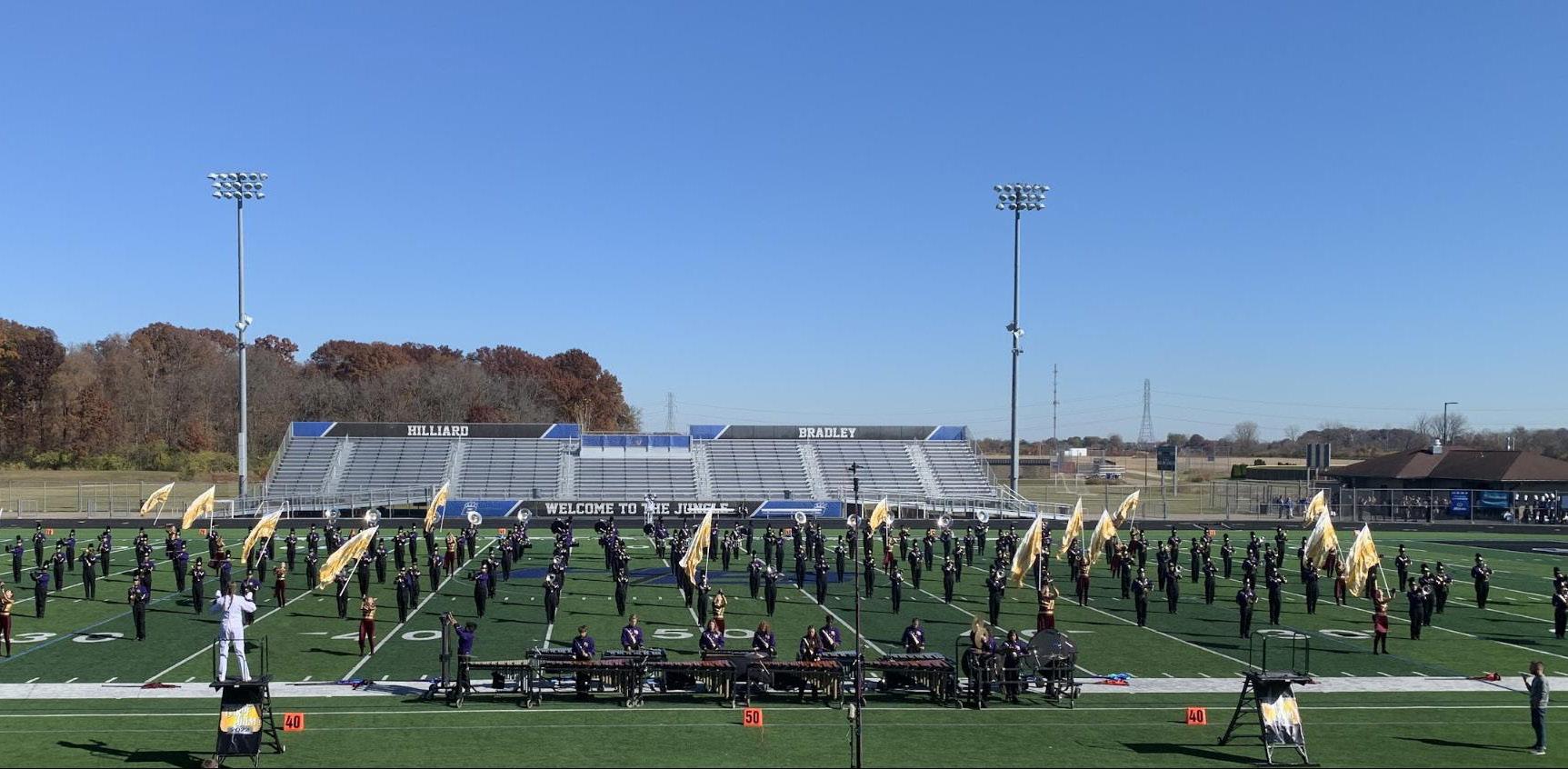 On October 29, the band arrived at school at 7:00 AM for the last rehears al before States, but many showed up earlier to give the seniors gifts and eat breakfast. After a silent rehearsal outside (so as to not wake up the whole neighborhood), the band got on buses and headed to Hilliard Brad ley High School for their performance. At arriv al, the weather was perfect and emotions were high as many of the seniors knew they would be performing for the last time. The final perfor mance was anticipated by many, and there were large crowd reactions to the exciting aspects of the show. After the band received the rating it had been practicing for since the season began, everyone was upbeat and had the opportunity to go to Polaris Mall in Columbus as a reward for their hard work.