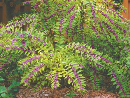 One of the many benefits of American Beautyberry is it’s a very lowmaintenance landscape plant, only needing light thinning, if desired, to prevent a leg-gy appearance and provide a more uniform shape. Sheering will remove flowers and fruit. Overgrown plants can be reset pruned but, they’re easy to propagate by cuttings and seed. Try planting many together to create an attractive native screen or hedge. Next time you’re trying to find an attractive shrub that provides many benefits, con-sider an American Beautyberry.