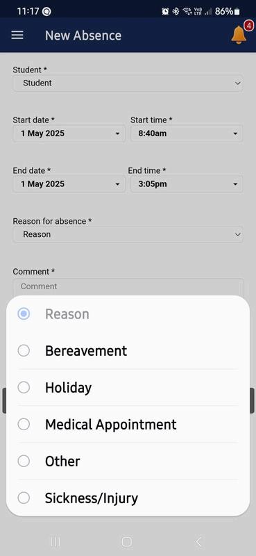 Parent Notified Absences is available within the SEQTA Engage App, meaning you can notify the College of the absence of your child(ren) through the App by selecting ABSENCES from the Menu in SEQTA Engage.