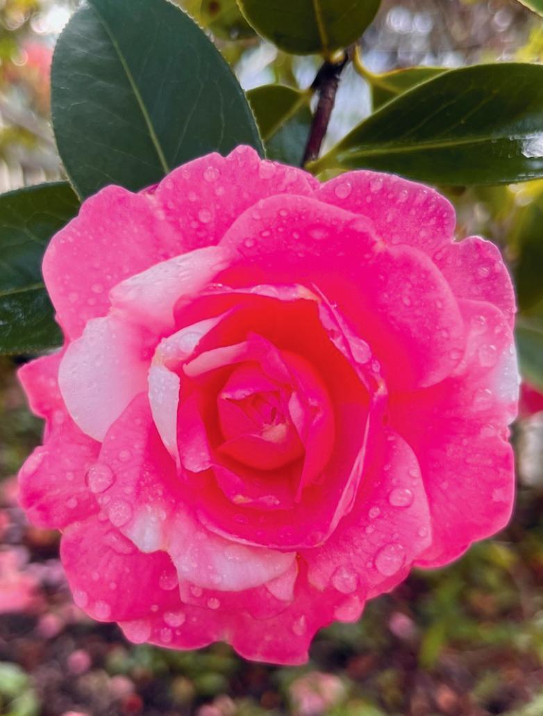 “When plants begin to look a bit droopy or unhappy, people tend to want to give them more water. But most plants, including camellias, don’t like having wet feet. Check what’s going on in the soil before you water. You don’t need any fancy equipment to do that. Simply lift the plant out of the pot and take a look at what’s happening underneath or poke your finger