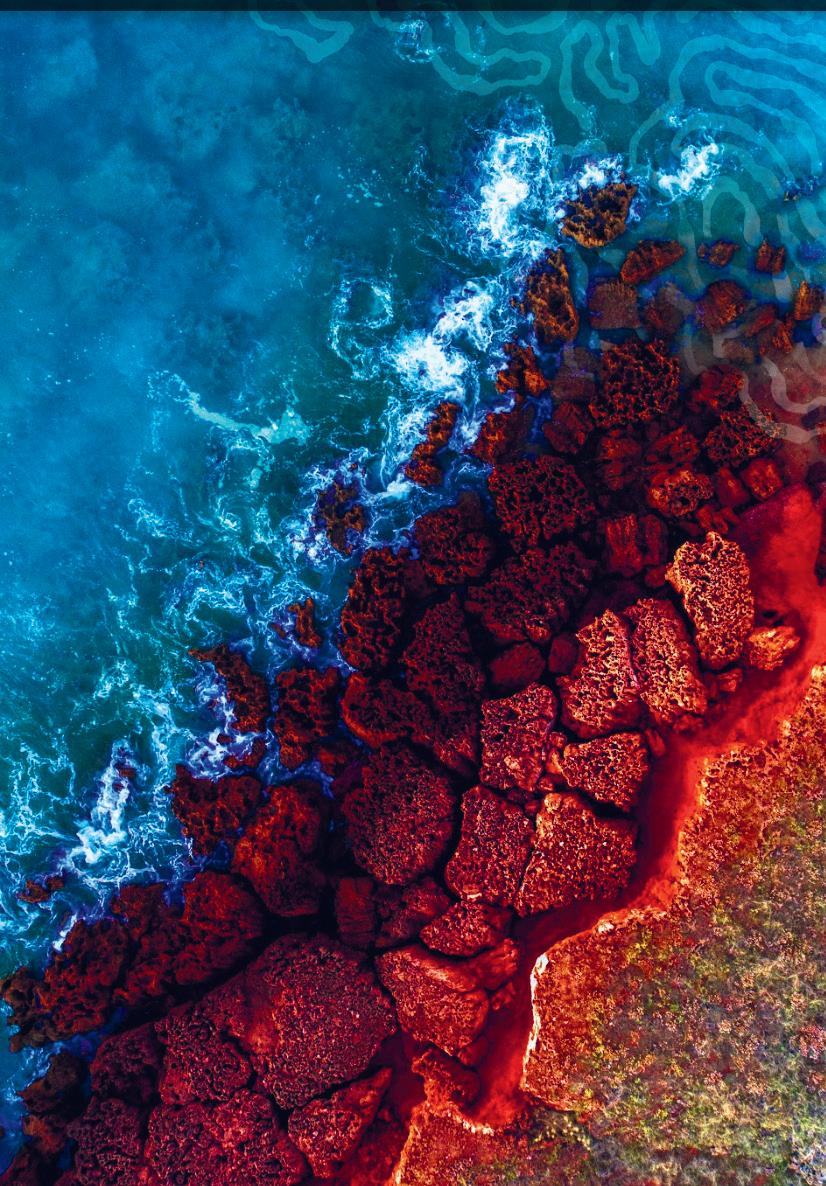 By combining his drone photography with hand illustrations representing Aboriginal totem stories, Tim’s unique work blends contemporary understanding and technology with traditional Aboriginal principles and storytelling.