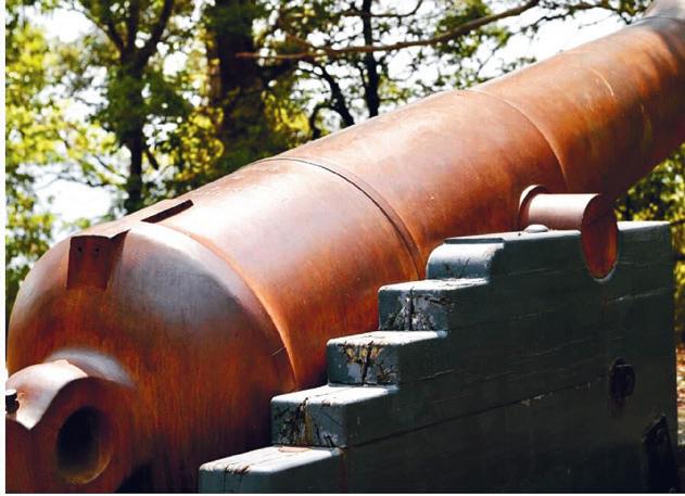 On 23 August 1870, the last British troops departed Sydney Harbour and the colony recruited its own defence force. Bradleys Head Battery was constructed and completed in 1871 for this new defence force. It has three gun emplacement pits which housed three smooth-bored muzzle 68-pounder guns, like this one below. The cannonball weighed 68 pounds and these guns had the capacity to shoot these cannonballs, or shots, up to 2700m. Perfect for firing at invading ships, if they ever got that far of course.
