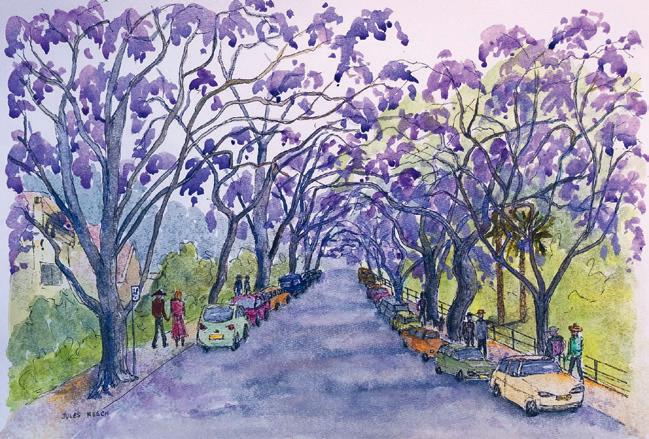 Chances are you’ve spotted Julie, or Jules as she signs her works, around the area, recording the detail of a streetscape or iconic water view with her trusty art pen.