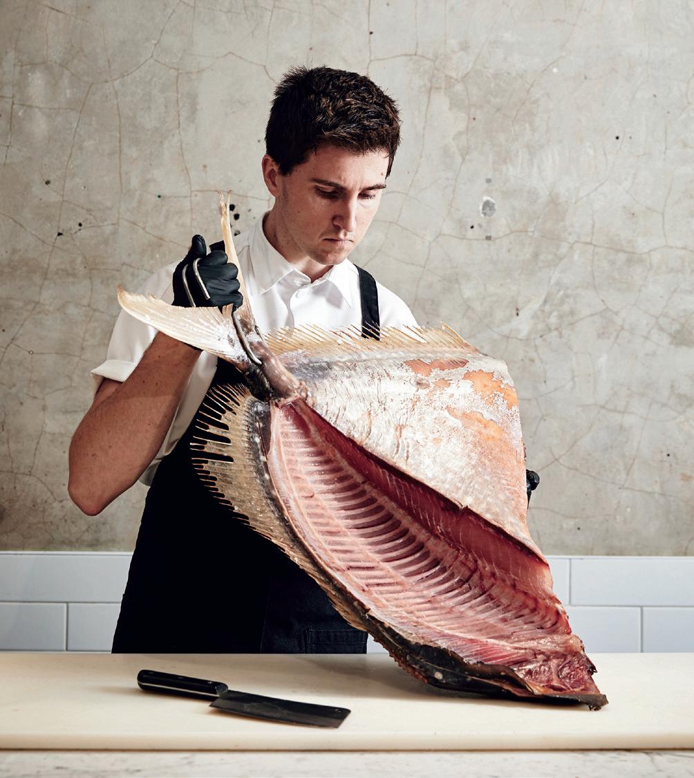 around 40%. Hardly anything is wasted, meaning menus are filled with items from perfectly cooked fillets to fish head terrines and rich dessert caramel rendered from fish fat.