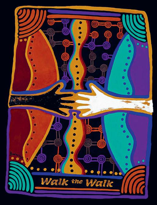 infrastructure projects, such as Songlines along the Pacific Highway. These artworks depict nine stories from the Gumbaynggirr, Yaegl, and Bundjalung people who make up the three Aboriginal nations the highway passes. They tell the songlines of those nations, reflecting their physical and spiritual belonging and connection with Country. The local Aboriginal community were involved throughout the process, with Elders and knowledge holders at the centre of the decision making.