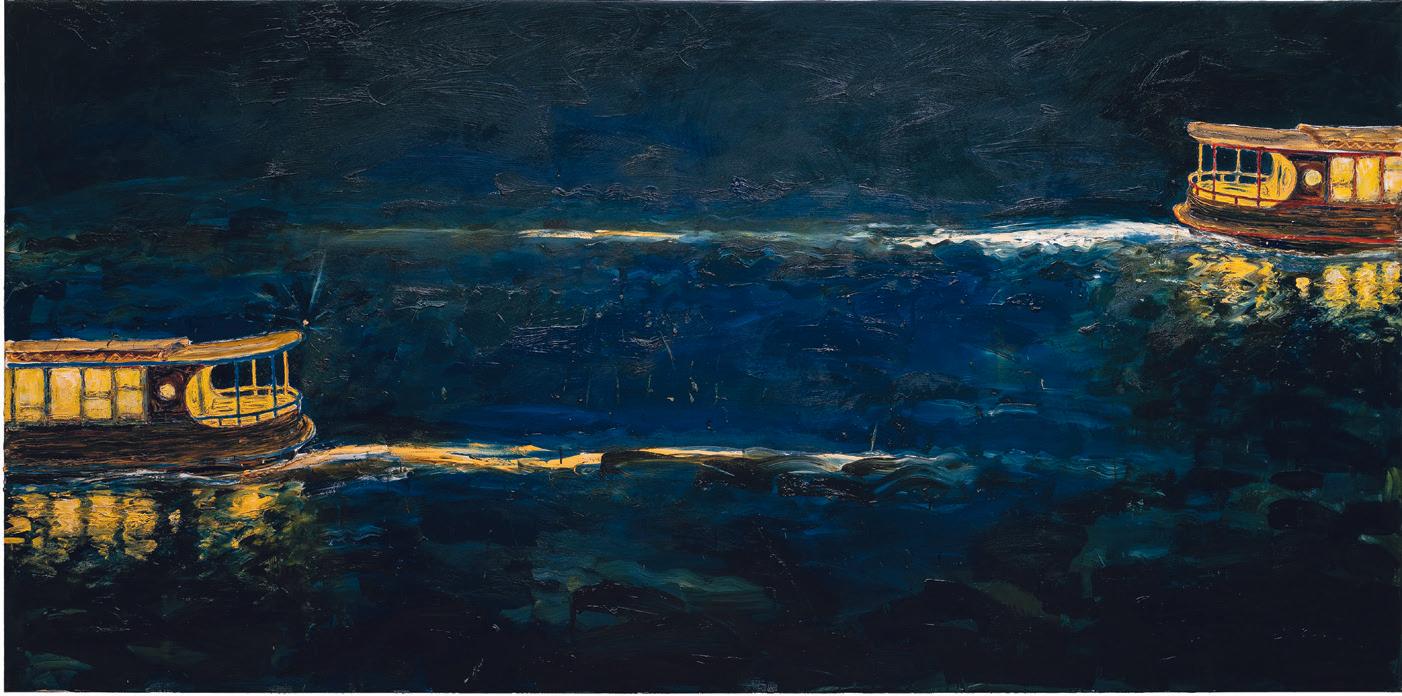 Below; Passing Ferries, a focal piece at Peter’s posthumous exhibition in December.
