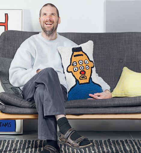Portrait of an artist Roberts’ practice is a sustained act of world building and storytelling. In his work, and in his life, people are bestowed new identities and exist as multiple personas. Roberts himself identifies as the Country Link Express train and the Burj Khalifa tower in Dubai. His portraits don’t just depict faces, they reveal identities - often layering subjects with extra eyes, noses, and his signature, piano teeth. Animals, cities, Sesame Street characters and references to fast food chains feature in his imagery, as do Roberts’ personal experiences, such as managing anxiety.