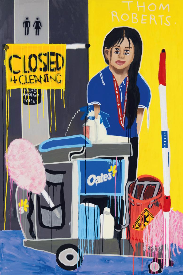 northside artist, Ken Done, or “Big Bamm Bamm,” as Thom calls him. Roberts was also a finalist in the 2024 Sulman Prize for a portrait of his friend Subita, Studio A’s cleaner, known to him as “Dinkie Duck.”