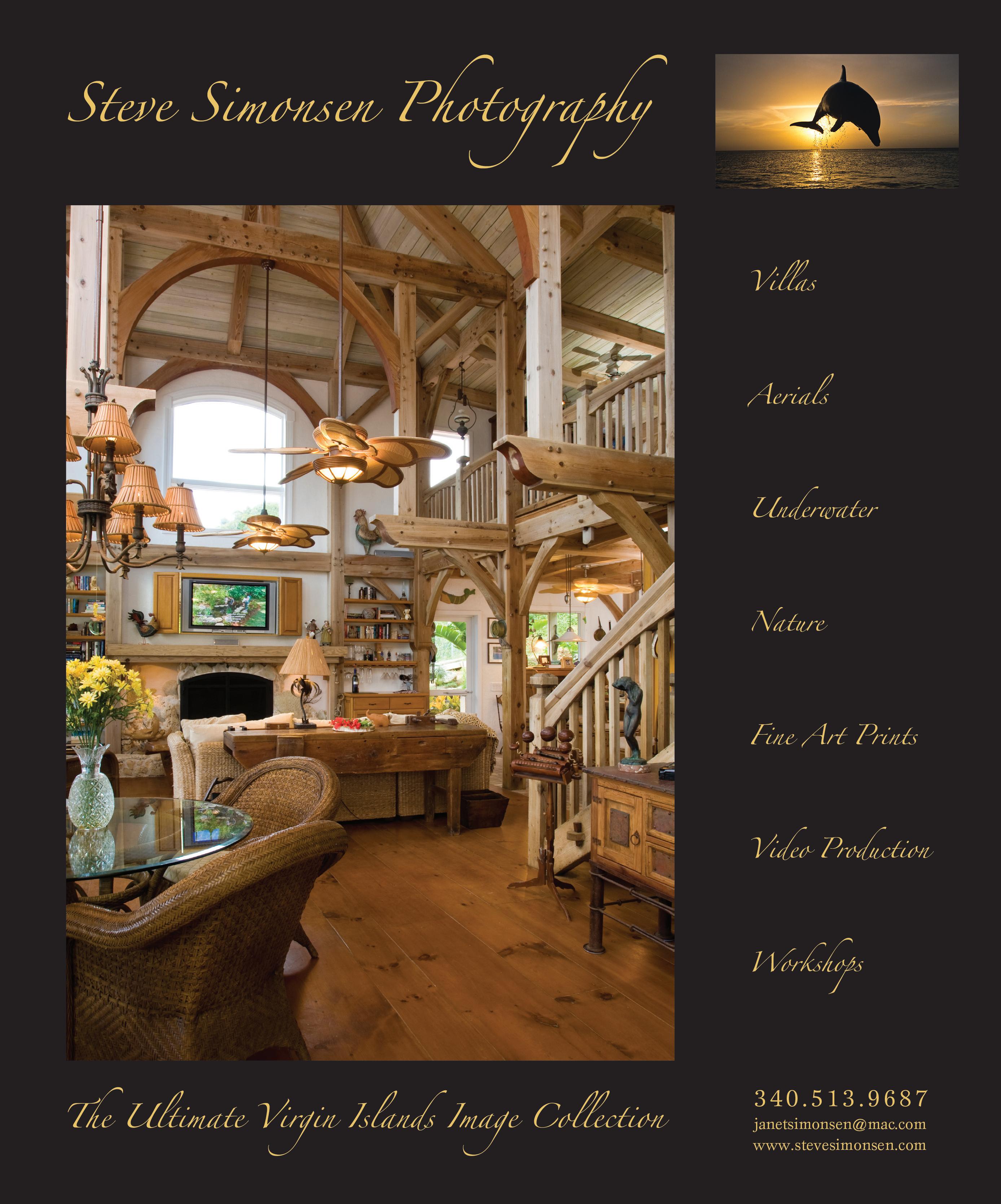 Steve and Janet Simonsen met on St. Thomas in 1987, got married at Secret Harbour in 1989, and moved to St. John in 1991. Since then, Steve’s photography has taken them around the world but has always been rooted in the islands they call home. He’s contributed to the V.I. Department of Tourism’s branding for two decades, and his work has appeared in Islands, Scuba Diving, Outside, National Geographic Adventure, and Caribbean Travel + Life. They also have supplied footage to Kenny Chesney for music videos, concert tours, and documentaries.