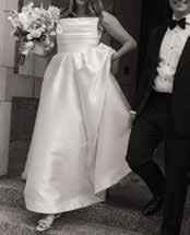 Our model, Abby Payne, looked radiant in a white Dove Satin gown from Simply Yours Bridal. The sleeveless design beautifully accentuated her neckline, while the row of buttons trailing down the back of the train was simply breathtaking. The pearl-trimmed veil and matching jewelry completed her timeless bridal look.