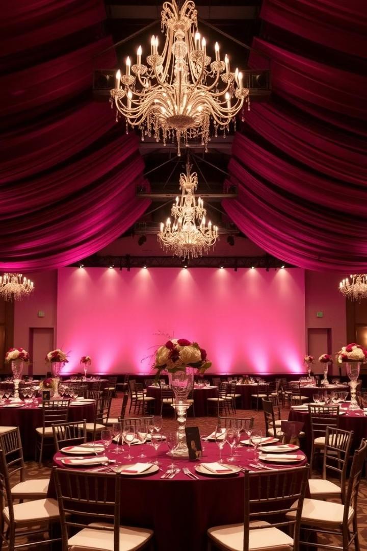 Glamorous Chandeliers, uplighting, and sparkling accents