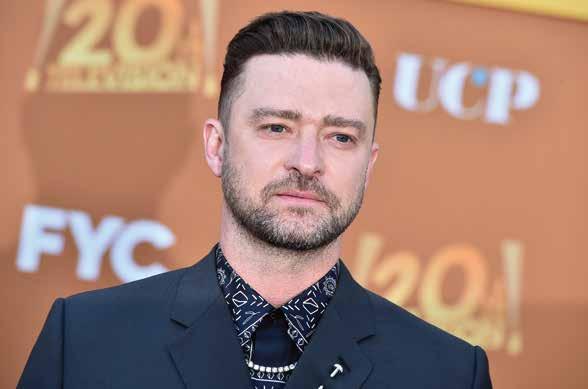 “Cry Me A River,” “SexyBack,” “What Goes Around...Comes Around” and “Can’t Stop The Feeling!” He has performed at Super Bowl halftime shows multiple times, including the infamous 2004 “wardrobe malfunction” moment when he ripped o a piece of Janet Jackson’s clothing and revealed her bare nipple.
