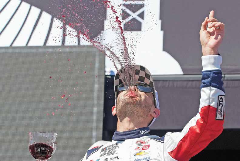 Kyle Larson celebrates his NASCAR Cup Series win at Sonoma Raceway on Sunday with a red wine shower.