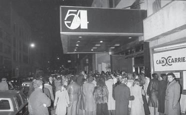Crowds linger outside the entrance to Studio 54 in New York on Nov. 6, 1979.