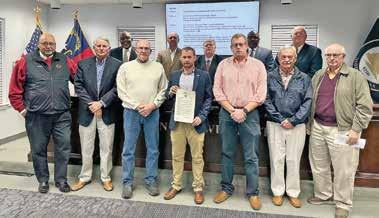 Front row from left to right: A.J. Connors, Grey Morgan, Larry Debose, Joshua Raynor, Scotty Kennedy, Jerry Tysinger, and Roger Davis. Back row from left to right: Commissioners Jesse Dowe, Justin Edwards, Dexter Edwards, Wayne Branch and Elwood Garner.