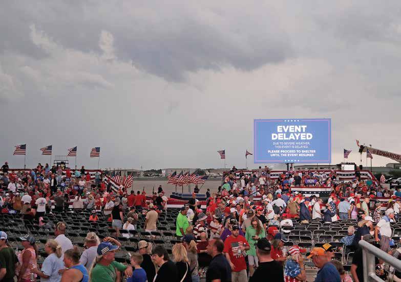 Supporters of former President Donald Trump le out of Saturday’s rally after it was canceled due to threatening weather in Wilmington.