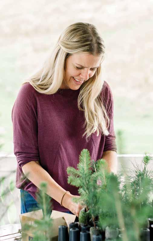 Carrie McClain works on saplings at Hart-T-Trees Farm.