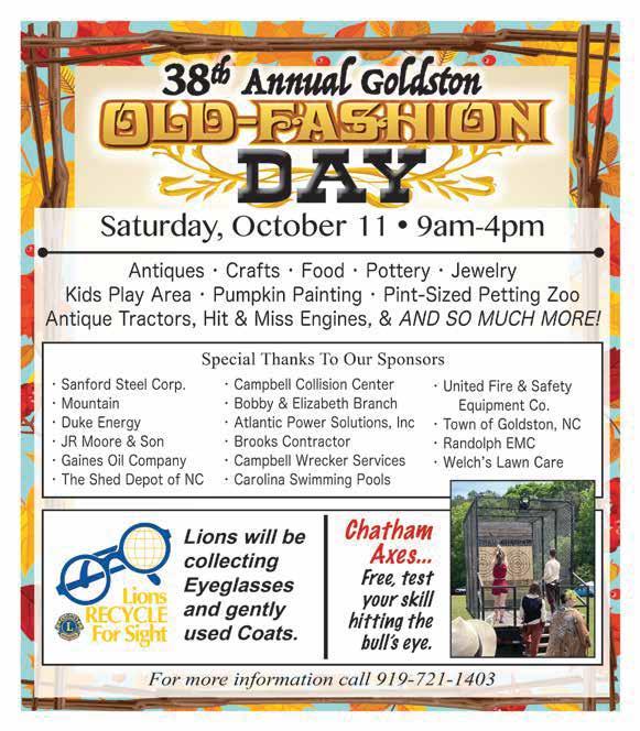 Moore County’s premier fall arts and crafts festival features over 100 vendor booths with handmade crafts, local artists and food vendors. Live entertainment includes performances by the Encore Center Choir, McKenzie Brothers and Whiskey Pines throughout the day.