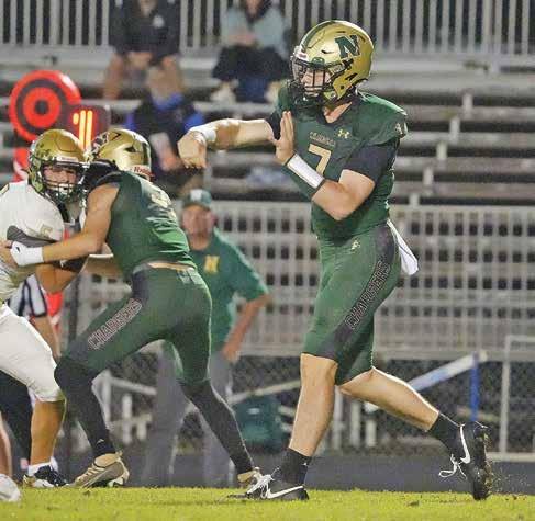 The Patriots returned from a week o to win their fth in a row, 29-21 at Jack Britt. Najee Gillis passed for 259 yards and three touchdowns, while Chris Najm ran for 135 yards.