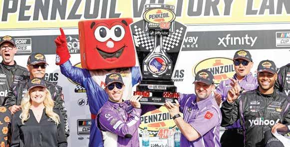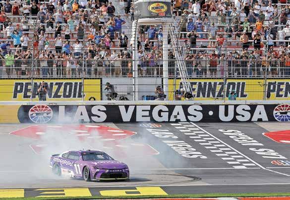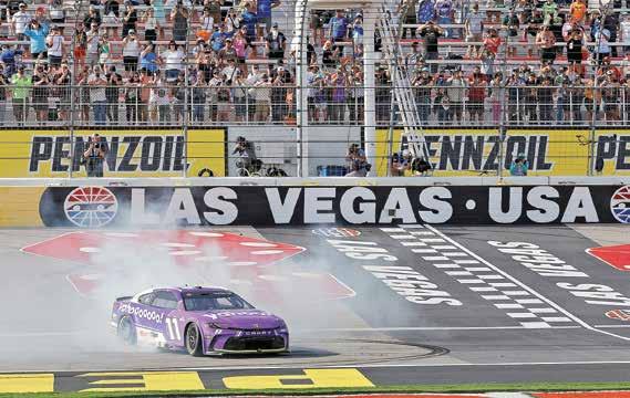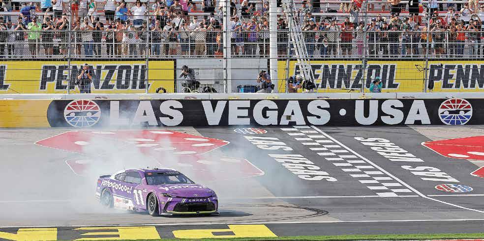 Hamlin’s 60th career victory was at Las Vegas last October, a win he dedicated to his father as it locked Hamlin into the Cuper Series’ championship-deciding nale. His father was in poor health and Hamlin went into the race knowing it was probably his nal chance to win a championship while Dennis Hamlin was still alive. Then Hamlin dominated last year’s title-decider at Phoenix Raceway, but the wrong call on the nal pit stop cost him the Cup championship that has eluded the three-time Daytona 500 winner. What followed was an emotional rollercoaster: Hamlin, as co-owner of 23XI Racing, was part of the winning team in a federal lawsuit against NASCAR last December. Weeks later, his father was killed in a re that destroyed the home Hamlin purchased to thank