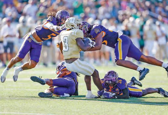 Junior Trace Shaw and senior Jax Hussey also grabbed backto-back interceptions in the second quarter, and Hussey’s pick led to senior Brandon Powell running in a 9-yard touchdown to give the Mustangs their first lead of the game, 17-10.
