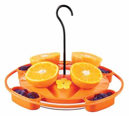 • Clear plastic reservoir holds 8 oz nectar - 4 flower shaped feeding ports with perches