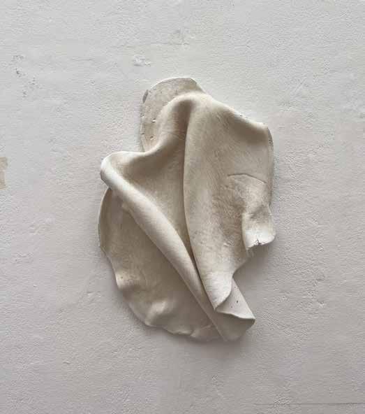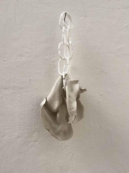 The clay imitates materials such as fabric and clothing, something soft and feminine when the clay is a hardened material. There is fragility and vulnerability that correspond with the clay pieces I make which resonates with the historical roots of ceramics. I like to focus on what materials I can use with the clay, most of the time they are previously owned materials however I have used found materials also, this juxtaposition with the materials is something that not only matters in terms of aesthetics but also in terms of practicality and domesticity.