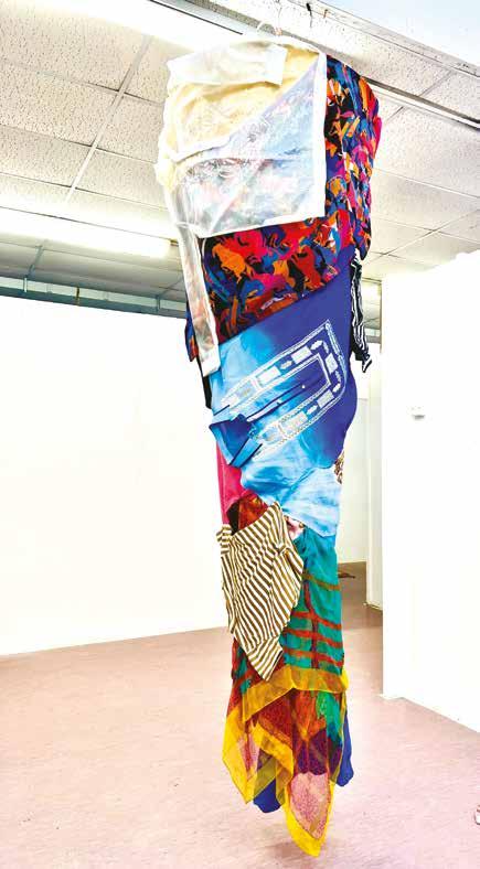 Suspended Sacks is a play on gender and its relevance to a material. Using a combination of different neon-coloured tights, I have meticulously placed and weighed them down using gypsum plaster in an interesting, layered installation. The installation overhangs each of its layers to give it depth, the use of neon-coloured tights was to ensure it captures the viewers’ attention and the posing of thetights is to make the viewer intrigued about the ‘body’ forms or to ask questions about gender.