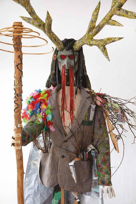EVA material, paper maché, cardboard, modroc, filler, acrylic paint, PVA glue, contact lens solution, bicarbonate soda