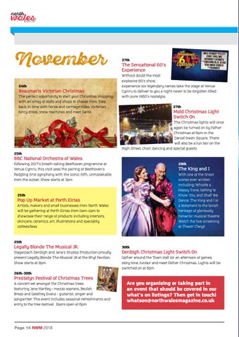 Are you organising or taking part in an event that should be covered in our what’s on listings? Then get in touch! whatson@northwalesmagazine.co.uk