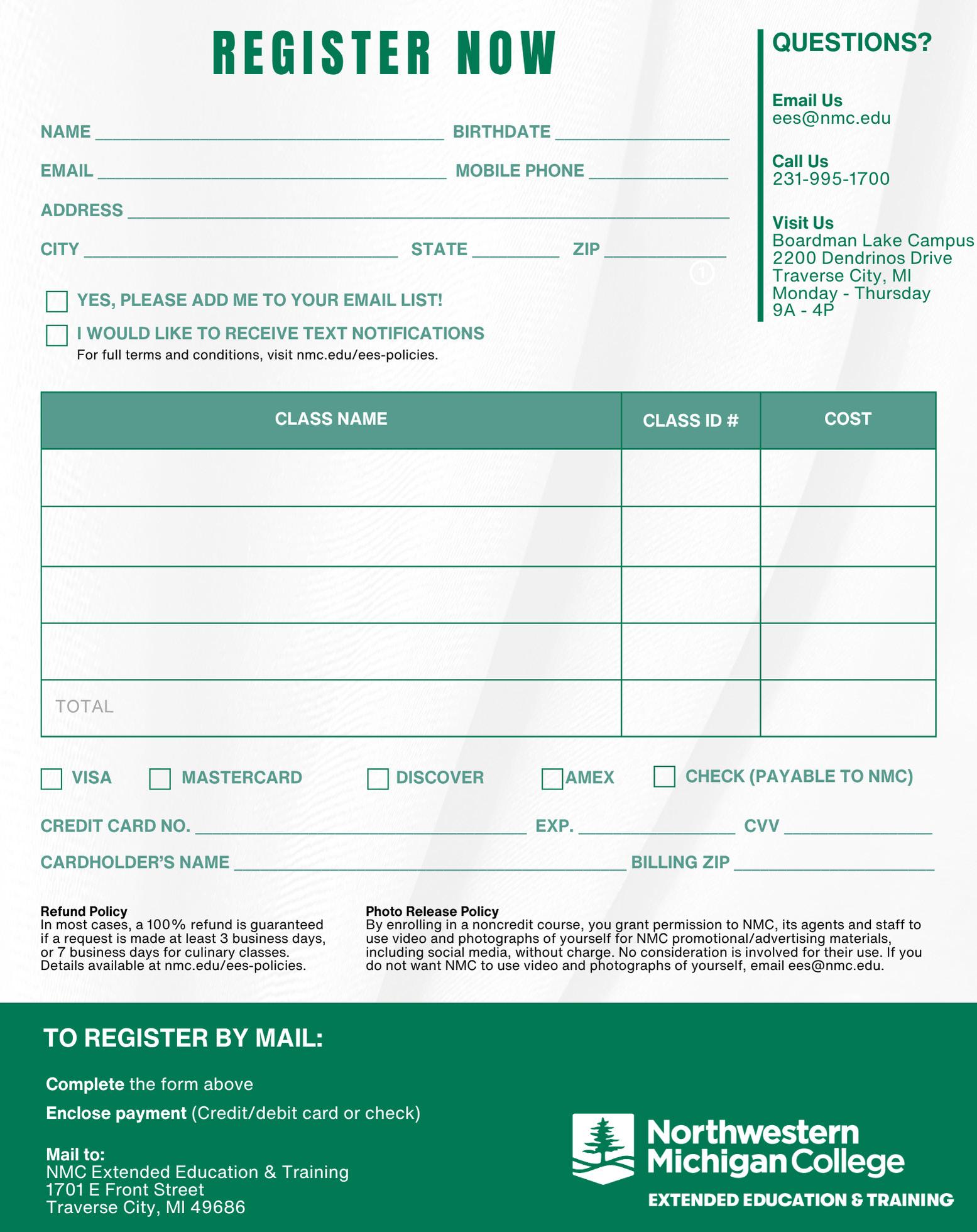 4. Visit us at the Boardman Lake Campus 2200 Dendrinos Drive 5. Register by mail (pg. 42)