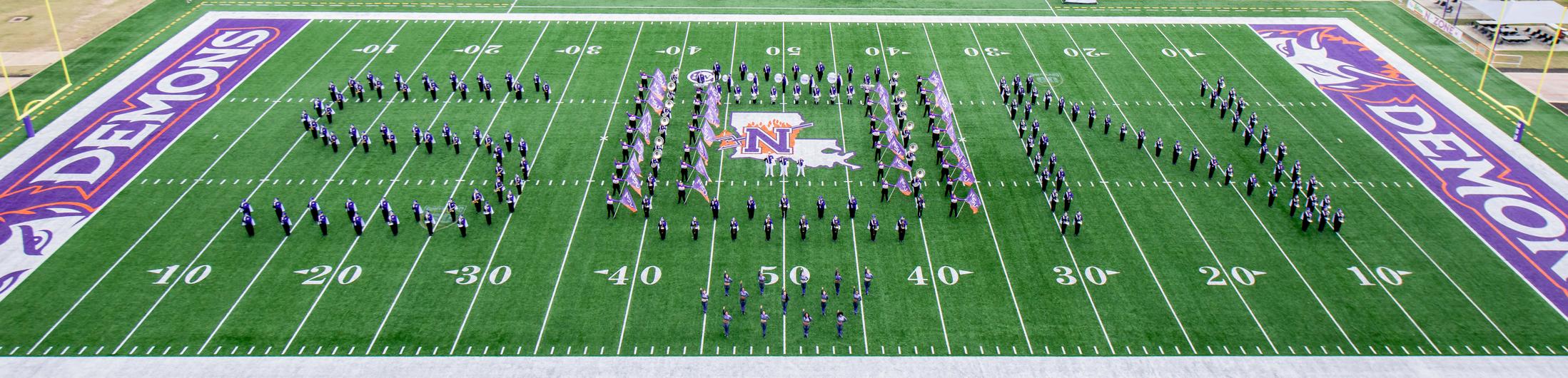 The Spirit of Northwestern (SON) marching band here at Northwestern State University is a band of excellence, tradition, and culture. There is a deep history of astounding sounds, routines, and productions throughout this organization, and you are soon to be part of the next chapter. The SON is one of the largest organizations on campus and boasts members from Missouri to Texas to Honduras, and of course, from Louisiana. The marching band also consists of many different majors, from music to elementary education to forensic sciences to nursing. Despite the diversity in our members’ past origins and future professions, the SON marching band is a home and family to all. So, as you twirl, drum, dance, blow, sing, bow, or chant, understand that you represent a legacy, a community, and a family.