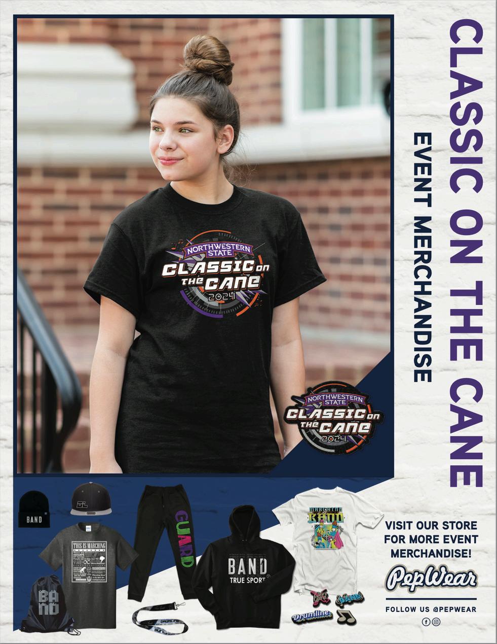 They will have a wide range of band t-shirts and novelty items as well as the “official” Northwestern State Marching “Classic on the Cane” Contest T-shirt and patch.
