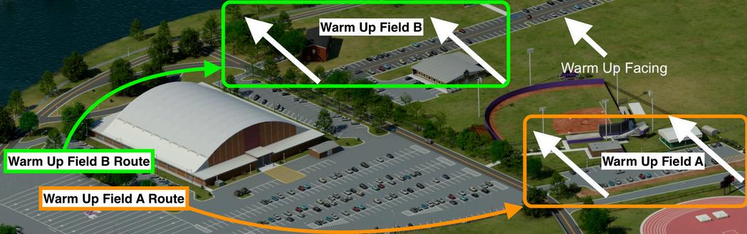 There are two warm-up areas for bands. Your band's assigned warmup area is identified on the schedule in this document Warm-up locations are also identified on the band flow map on the Event Flow & Departure Map page.