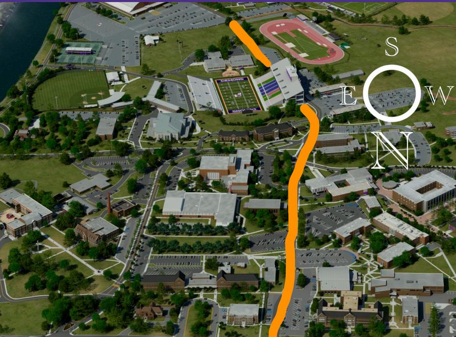 Warm-Up Location B is on Organizational Dr (between Baptist Collegiate Ministries (BCM) and Kappa Sigma)