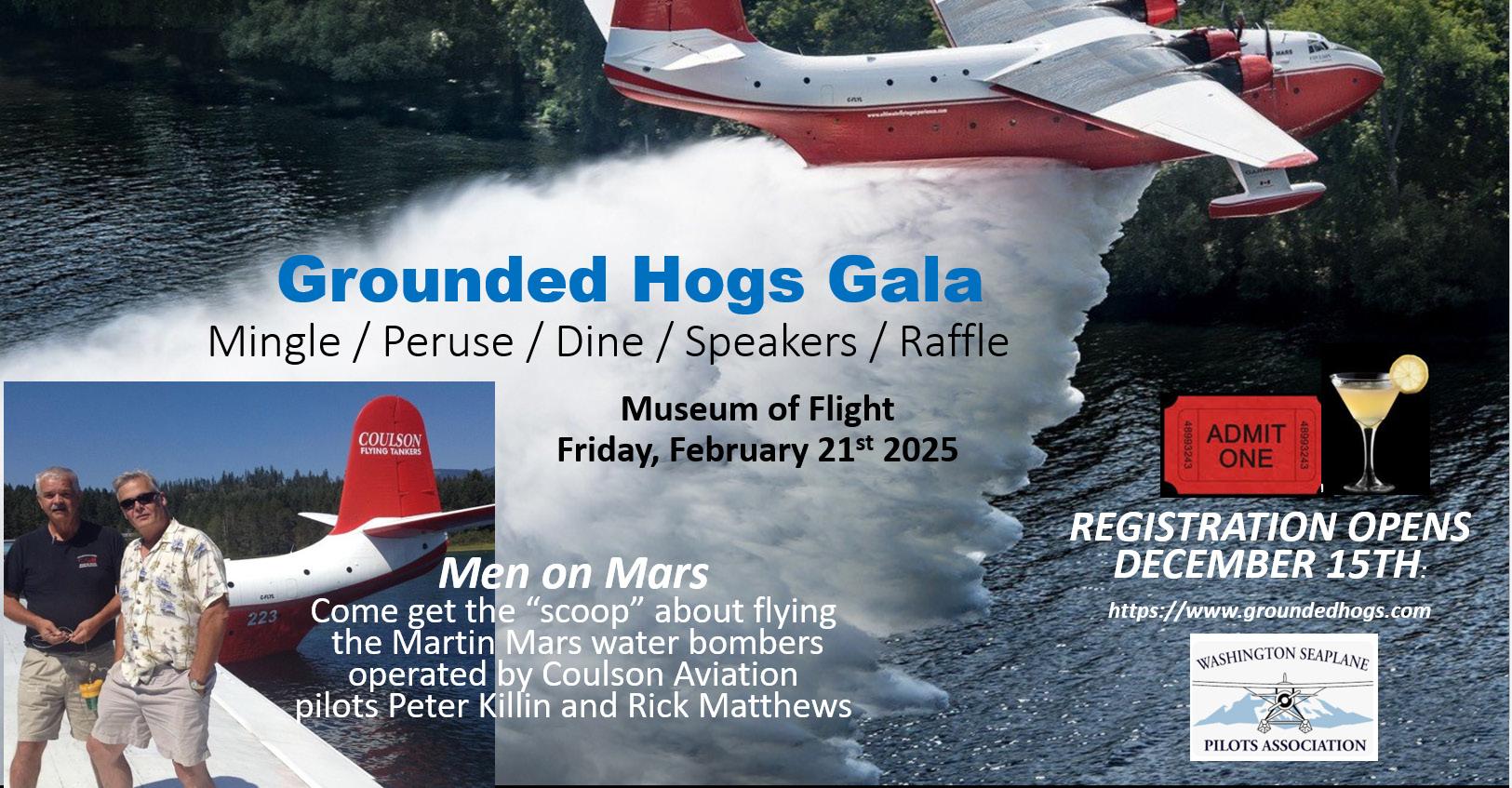 The Washington Seaplane Pilots Association (WSPA) is once again proudly hosting their much-anticipated annual Grounded Hogs Gala on February 21, 2025, the lively evening immediately preceding the Northwest Aviation Conference, at Renton’s esteemed Museum of Flight’s T. A. Wilson Great Gallery.