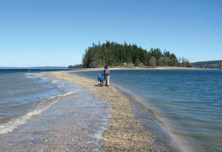 Highlights: Beach walk hike upon a spit to a small island; excellent birdwatching Distance: 4.0 miles round-trip Elevation gain: 150 feet Difficulty: Easy Permits: Discover Pass Season: Year round Notes: Hike is only possible in low tides. Consult tide tables and plan accordingly. Kid & Dog Friendly: Yes Amenities: Privies, picnic tables GPS waypoint: N47 15.737 W122 52.236 Contact/Map: Washington State Parks; parks.state.wa.us/545/McMicken-Island Trailhead Directions: From Shelton, SR 3 east for 7.8 miles. Turn right onto Pickering Rd and drive 3.3 miles. Bear left onto Harstine Bridge Rd and come to a T-junction upon entering Harstine Island. Go left on North Island Dr and after 3.0 miles turn right at the island community hall onto East Harstine Island Rd. Proceed for one mile and turn left onto Yates R. Continue 0.9 mile and turn right into Harstine Island State Park. Reach trailhead parking in 0.2 mile.