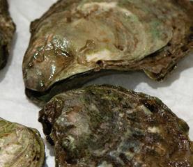 Up to 3”, rounded shell, white to purplish black and may be striped with yellow or brown; oyster’s flesh is a light olive green with a metallic flavor. Native oyster to the area and currently protected in wild habitats.