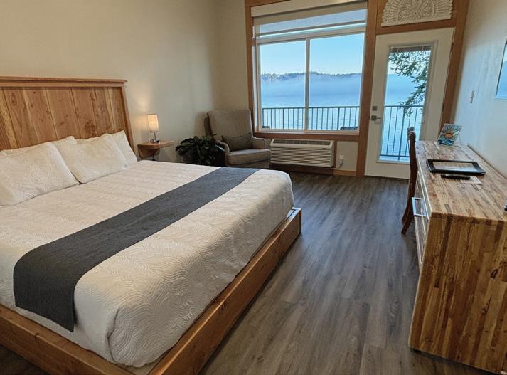 The remaining wood was harvested from the family’s Olympia property and milled in Shawn’s workshop with help from his father, uncle, brother, and one of his sons.This multi-generational effort has resulted in rustic, elegant furnishings that give each room a unique character and sentimental value. The craftsmanship reflects not only Shawn’s talent, but also the family’s deep connection to the land and water that surround the resort.