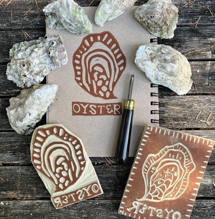 In this class, you will practice object observation, drawing, carving, and printing of an oyster. Take home your carved rubber block and your original art prints. Ages 16+ due to use of sharp tools. Tickets at mollywheatbaker.com